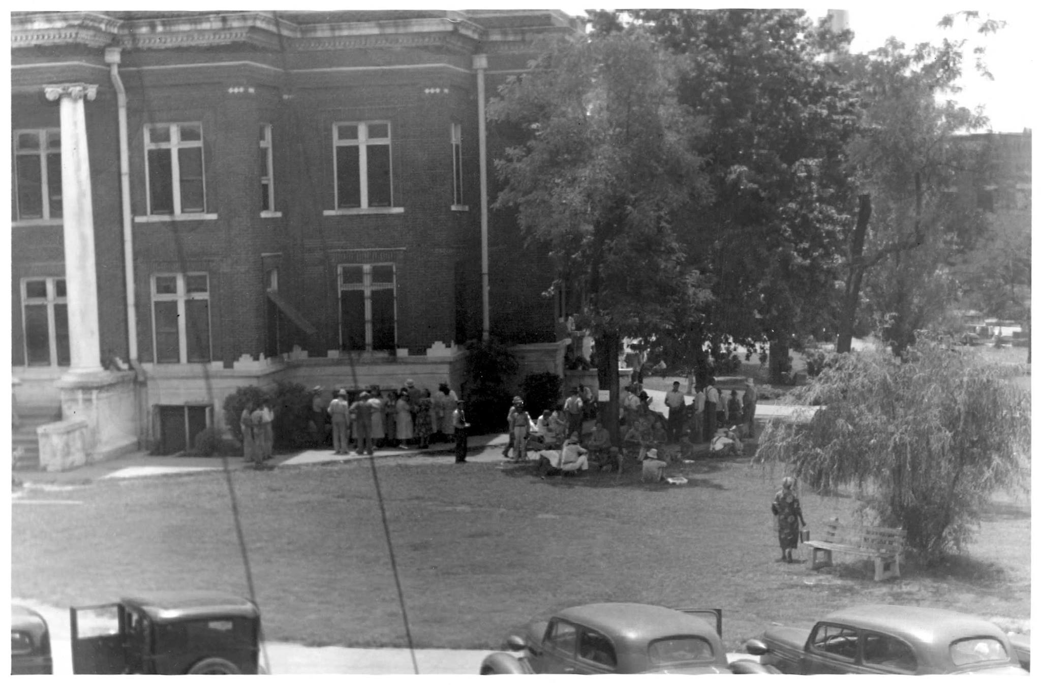 The first term of the Dyer Circuit Court convened at John Warren's two-room, dirt-floor frontier cabin with a dogtrot running between the rooms at Stokes in November 1824, with Judge William Mitchell presiding. Mark Mitchell was clerk and Griffith Rutherford was sheriff. Magistrates of the first court wereJohn Rutherford (chariman), Benjamin Porter, John D. Burrus, William Lyrell, and Dr. Thomas Nash (clerk).
